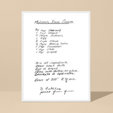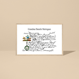 Turn cherished family recipes or handwritten notes into ready-to-hang framed artwork. Each piece includes a high-quality matte paper print, a wooden frame, and attached hanging hardware — creating a timeless gift that’s perfect for kitchens, dining rooms, or family spaces to be treasured for generations.