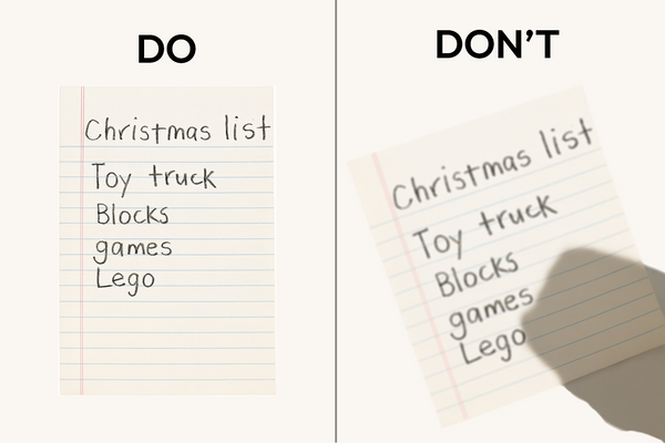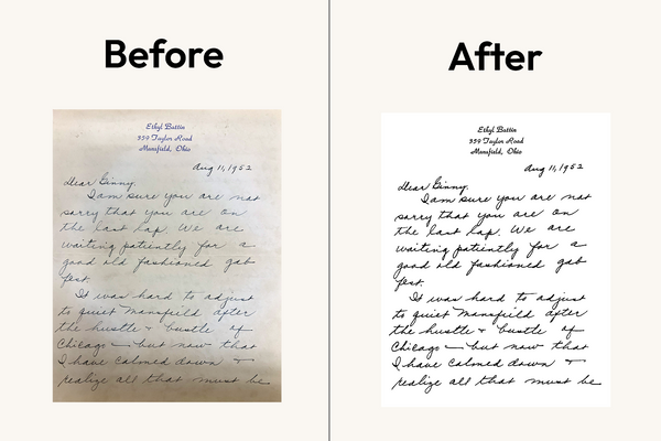 Take a clear, well-lit photo of your letter laid flat on a smooth surface, avoiding shadows, glare, or cropped edges so all text is sharp and visible. Natural lighting near a window works best for capturing true color and detail. For scans, full color scans work best.